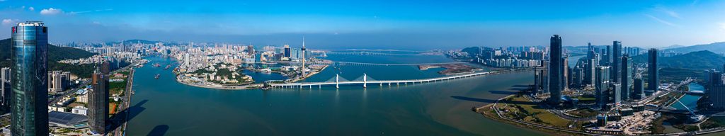 12月11日,澳门半岛、横琴、珠海的景色(无人机拼接照片)。新华社