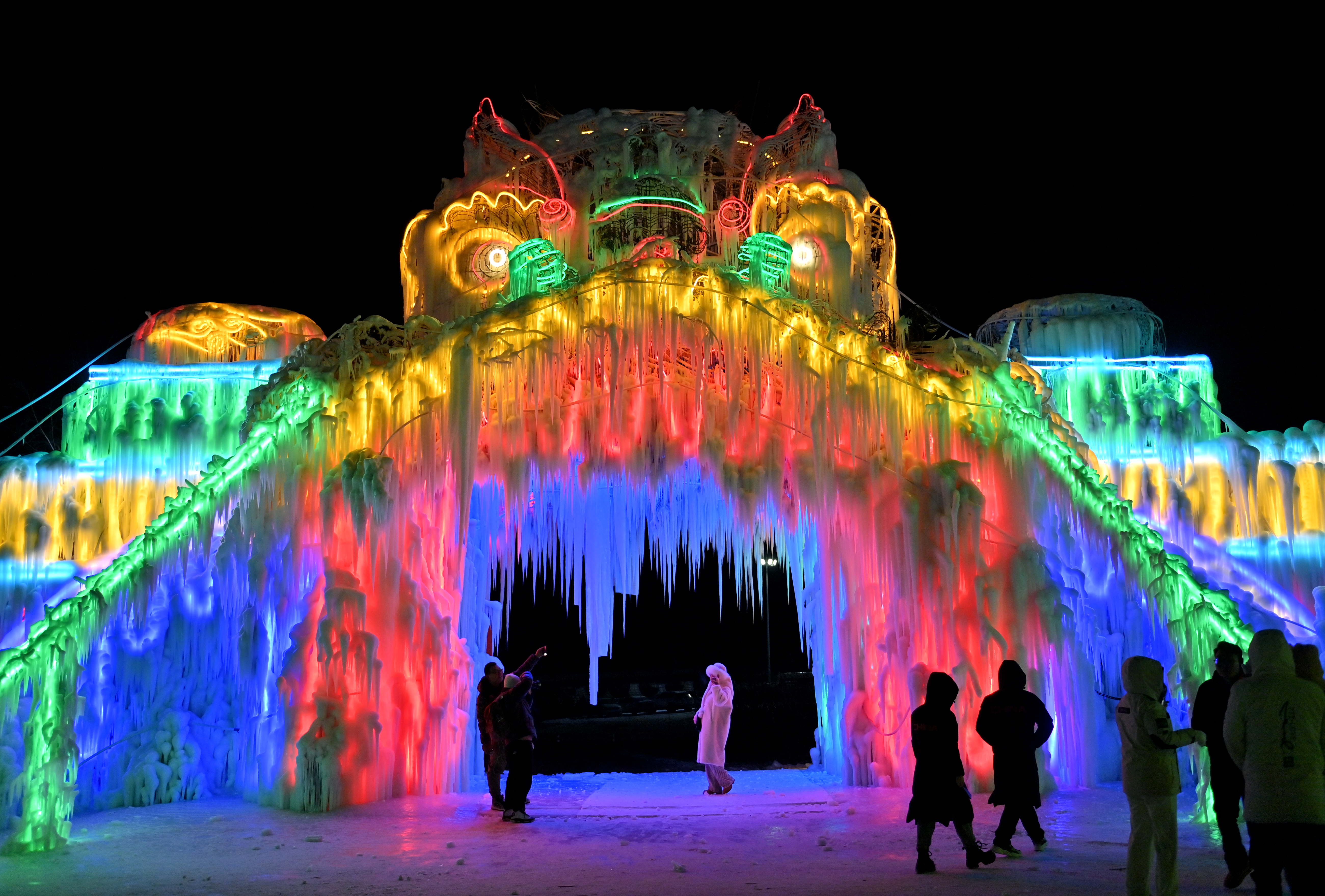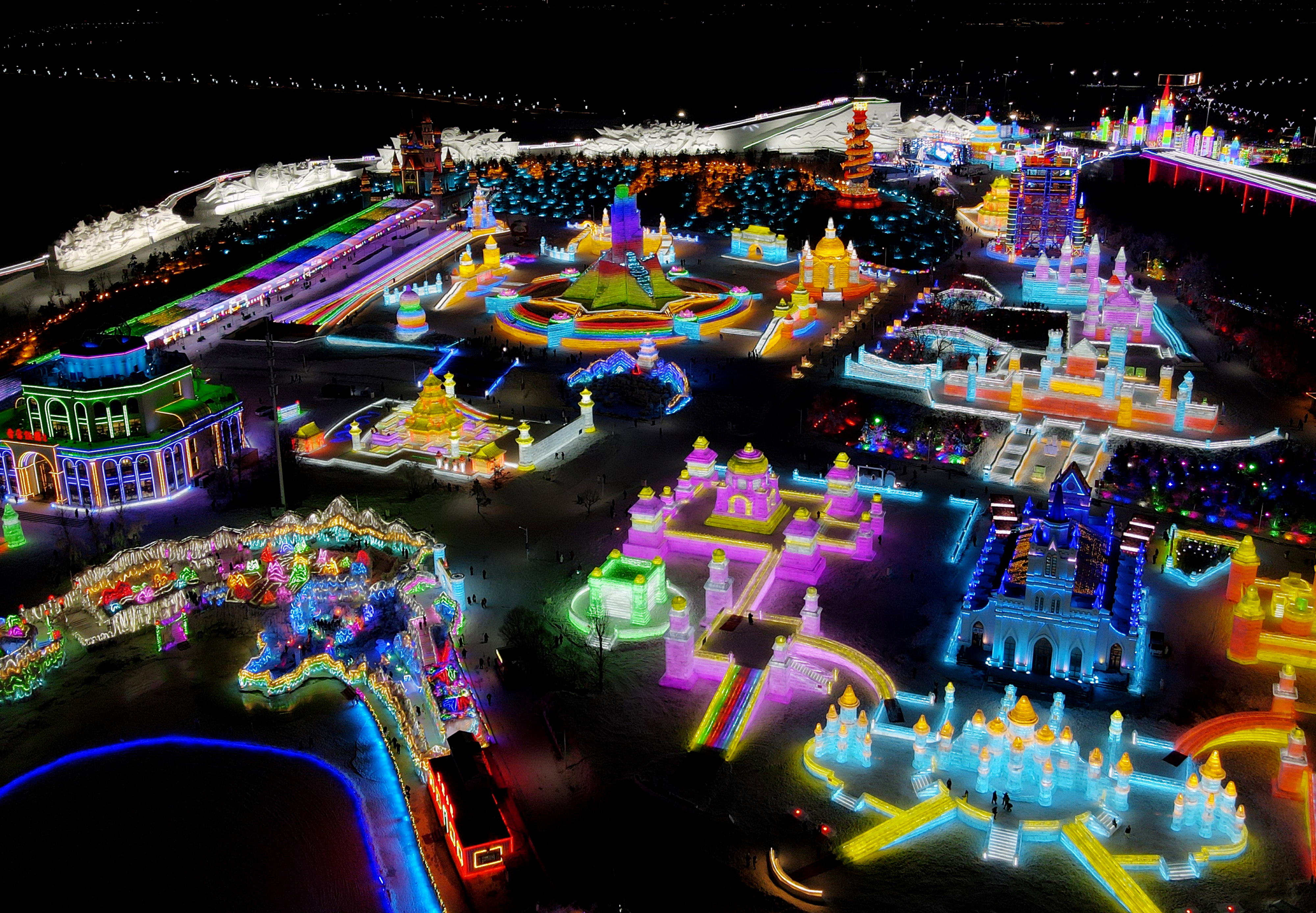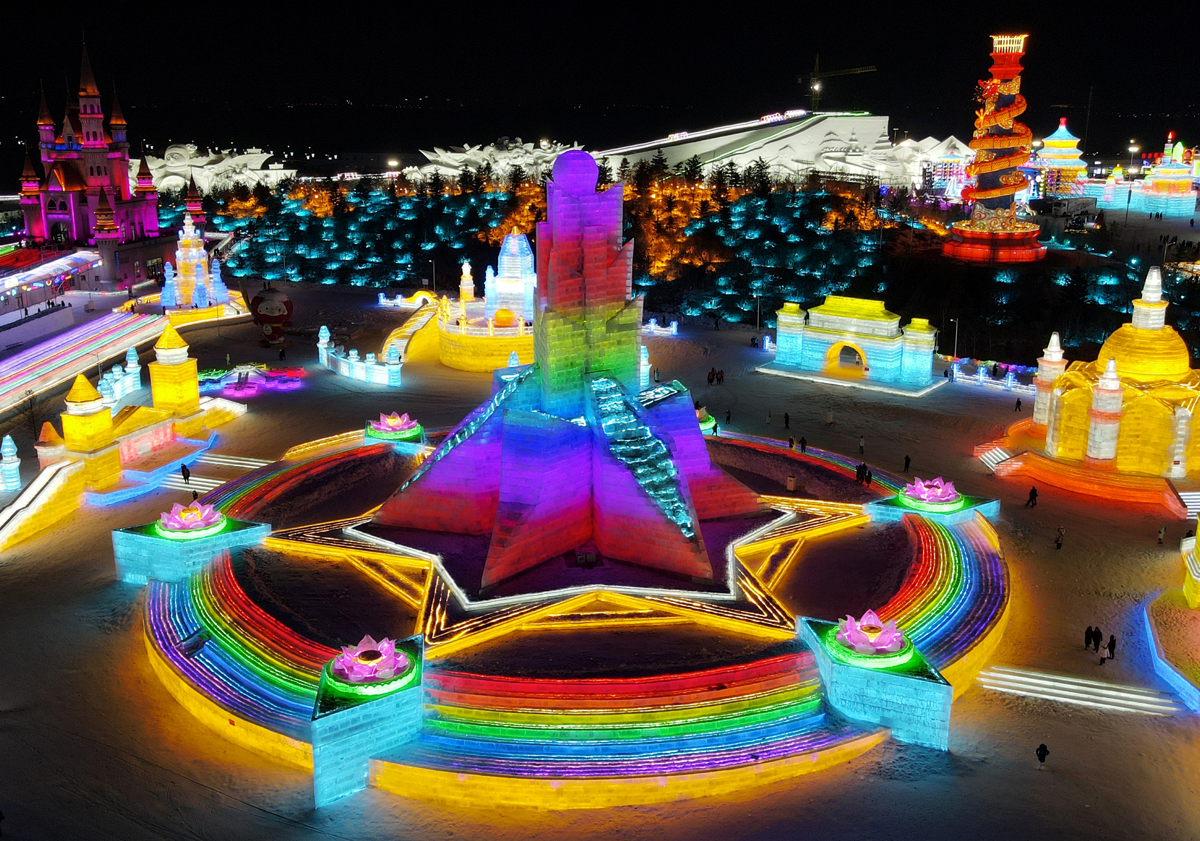 12月17日晚,长春冰雪新天地开门迎客。2024-2025雪季的长春冰雪新天地总占地面积达到156万平方米,冰雪雕塑200组创历届之最,并设置1314米的空中雪漂流、520米的冰滑梯等设施供游客游玩。中新社