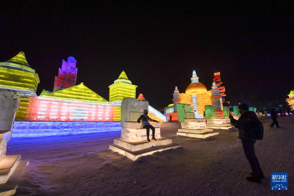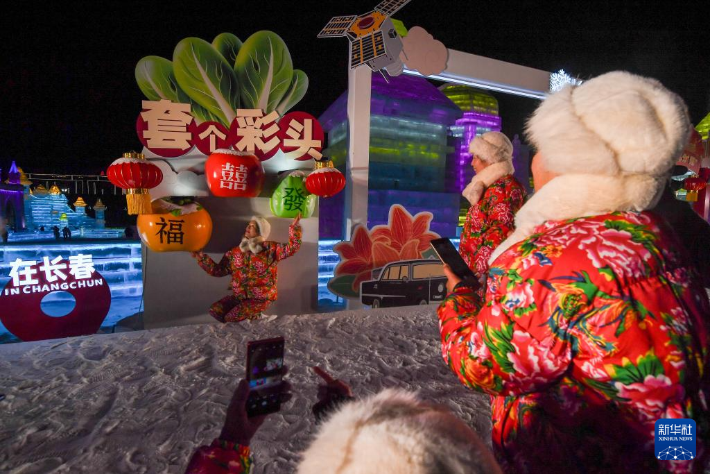 12月17日,游客在长春冰雪新天地游览拍照。新华社