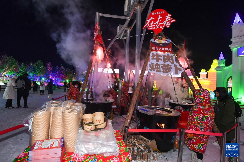 12月17日,工作人员在长春冰雪新天地制作特色美食。新华社