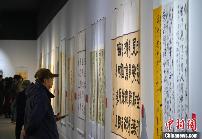 12月17日,以“中国梦·蓉澳情”为主题的庆祝澳门回归祖国25周年蓉澳书画展在四川省成都市红美术馆开展。本次书画展共展出100幅来自成都和澳门杰出书画家的书法美术作品,将持续至12月30日。图为展览现场。