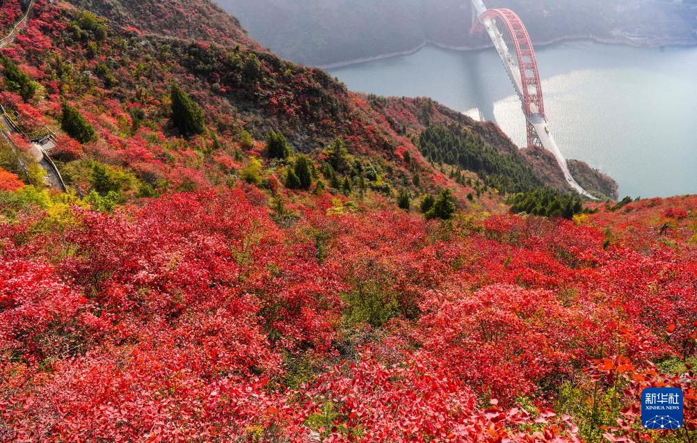 11月17日,红叶初现长江巫峡。中新社