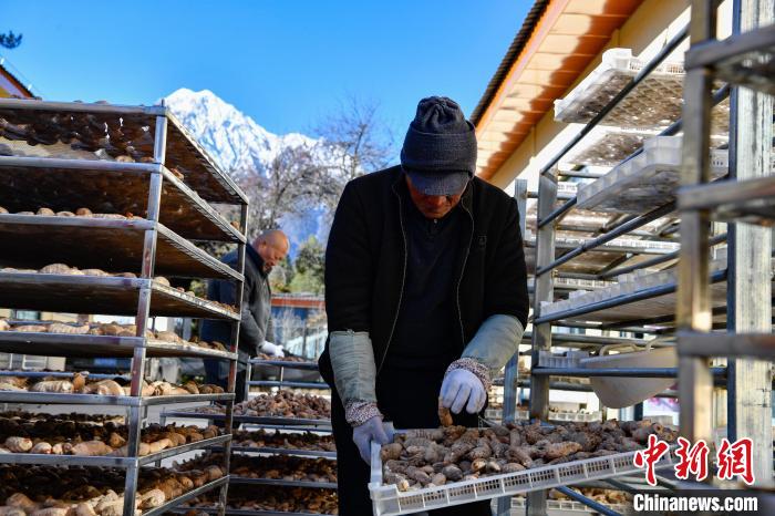 12月18日,村民在晾晒藏天麻。中新网