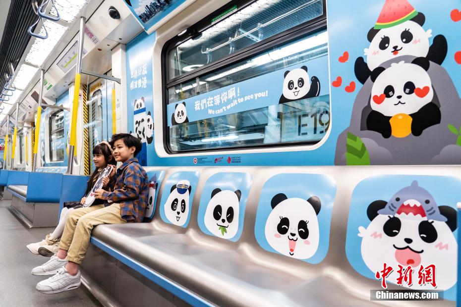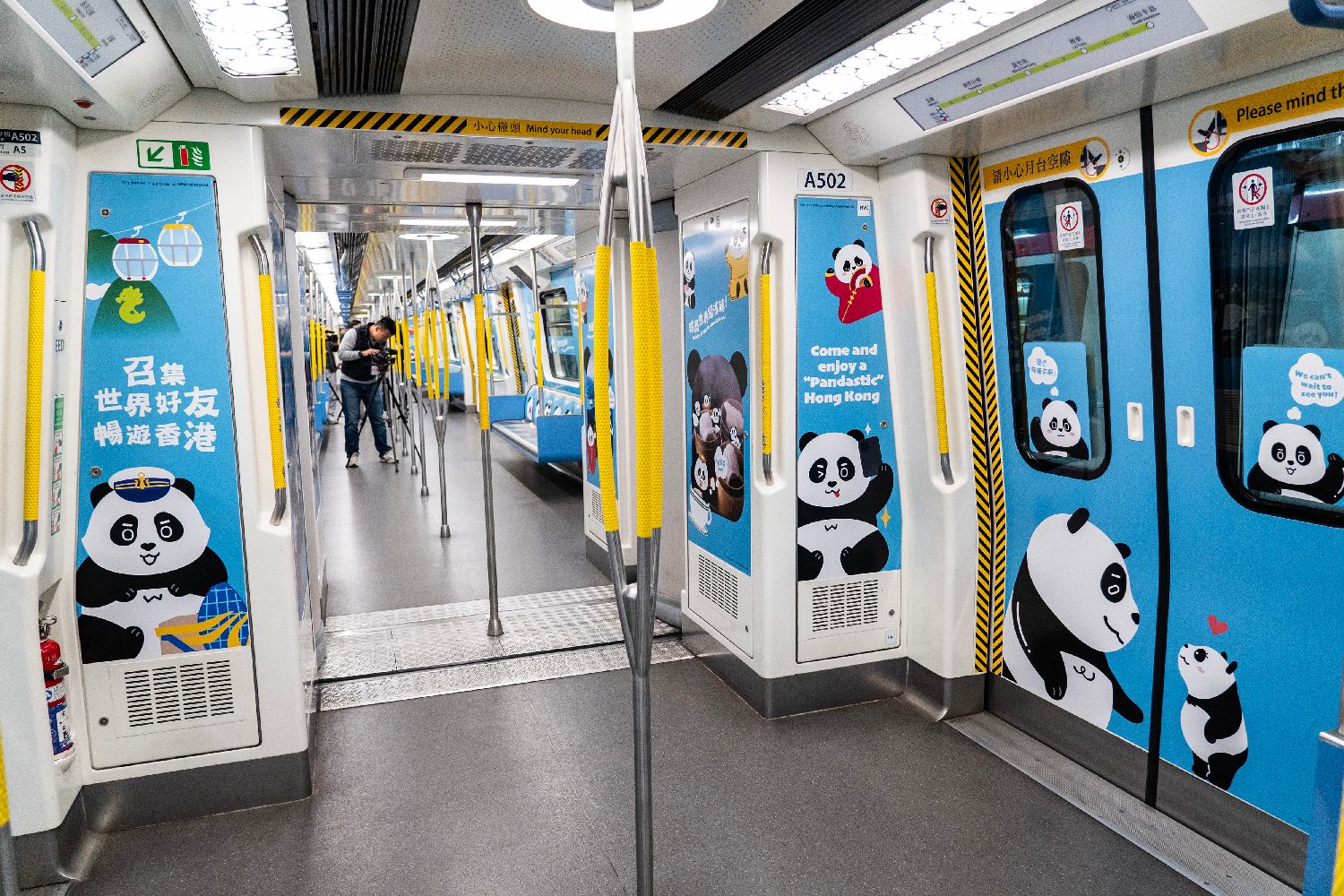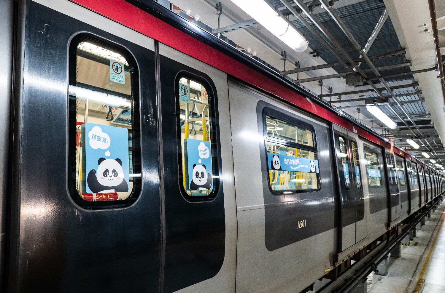 一列港铁列车车厢被大熊猫主题元素“扮靓”。中新网