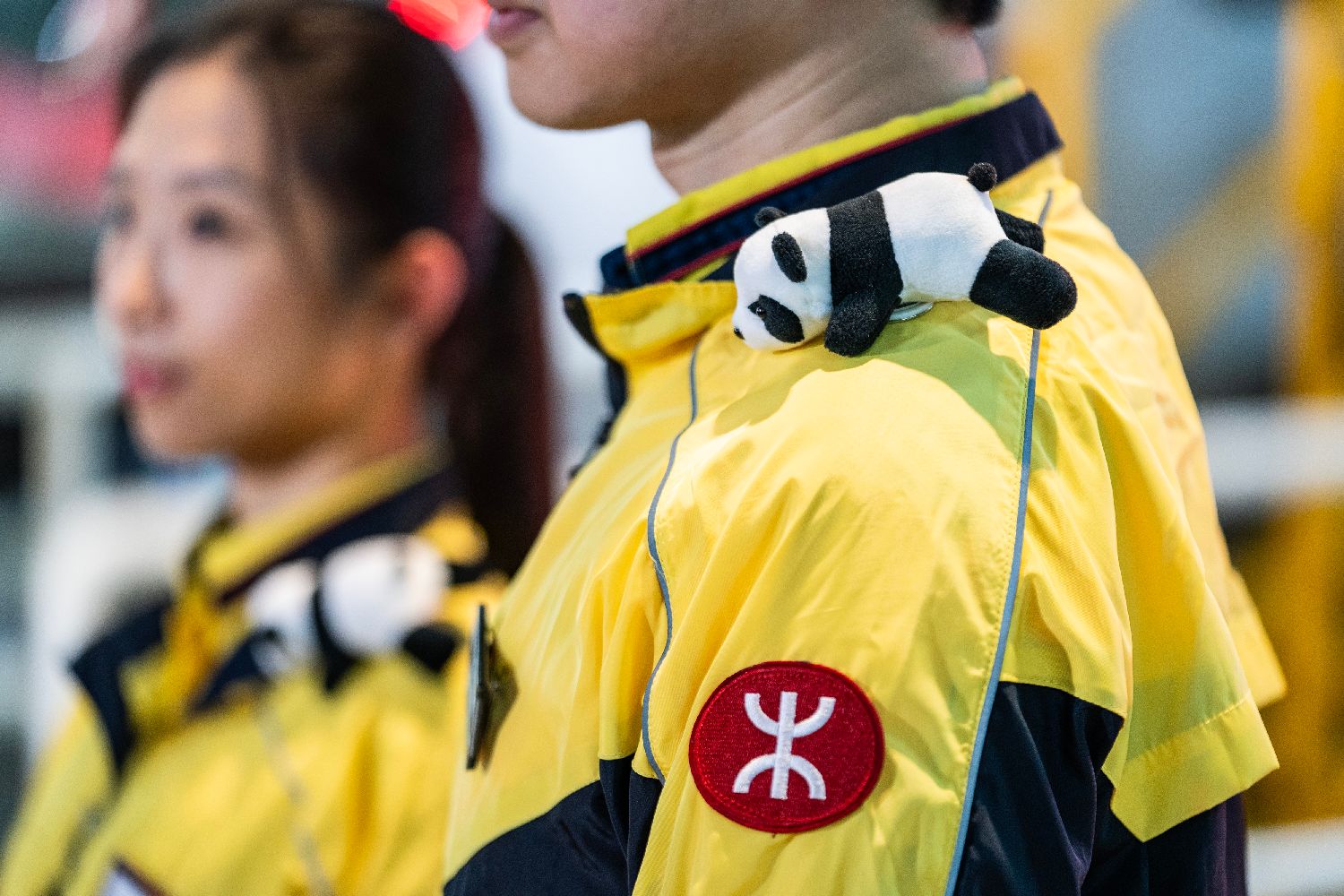 12月19日,部分港铁工作人员的服装上增添大熊猫玩偶。中新社