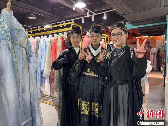 马来西亚青少年正在挑选汉服。