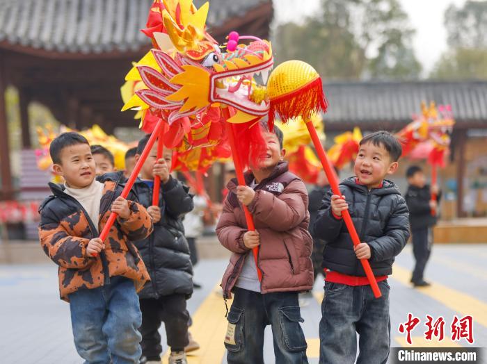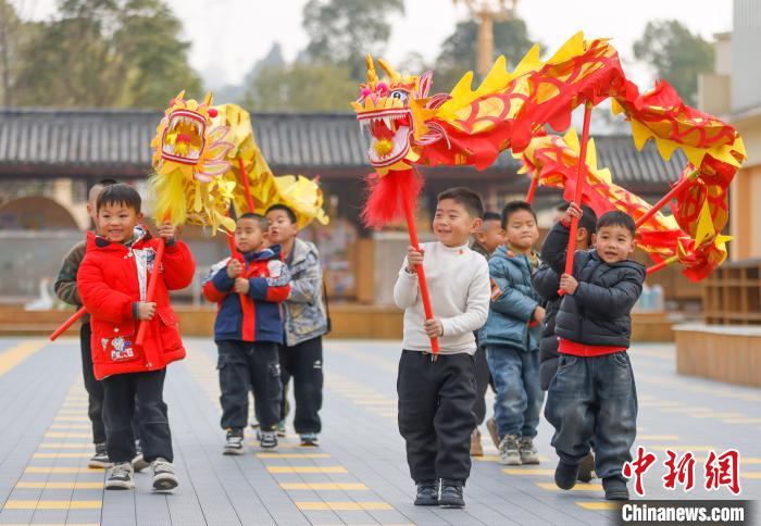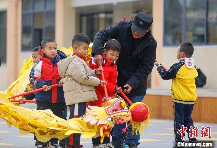 近年来,贵州省黔东南苗族侗族自治州施秉县第四幼儿园将当地独具特色的正月龙灯会、苗族剪纸、苗族刺绣、苗族芦笙舞等引进课堂,让孩子们在丰富多彩的活动中,传承非遗技艺,感受传统文化的魅力。图为小朋友练习舞龙。