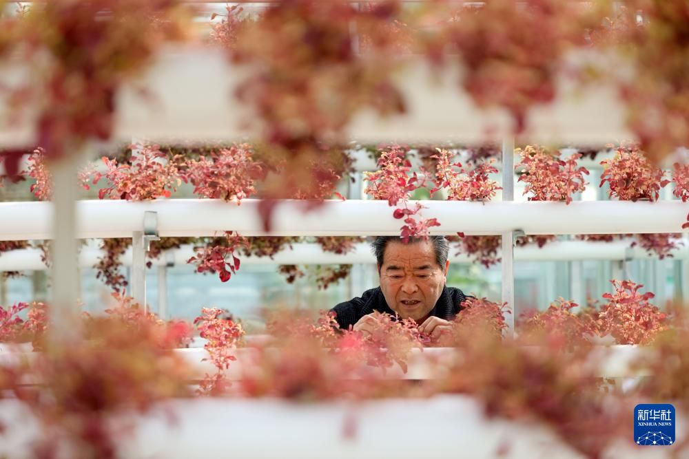 12月24日,在山东省枣庄市峄城区底阁镇康庄村“鱼菜共生”智慧大棚内,管理人员在管护无土栽培蔬菜。