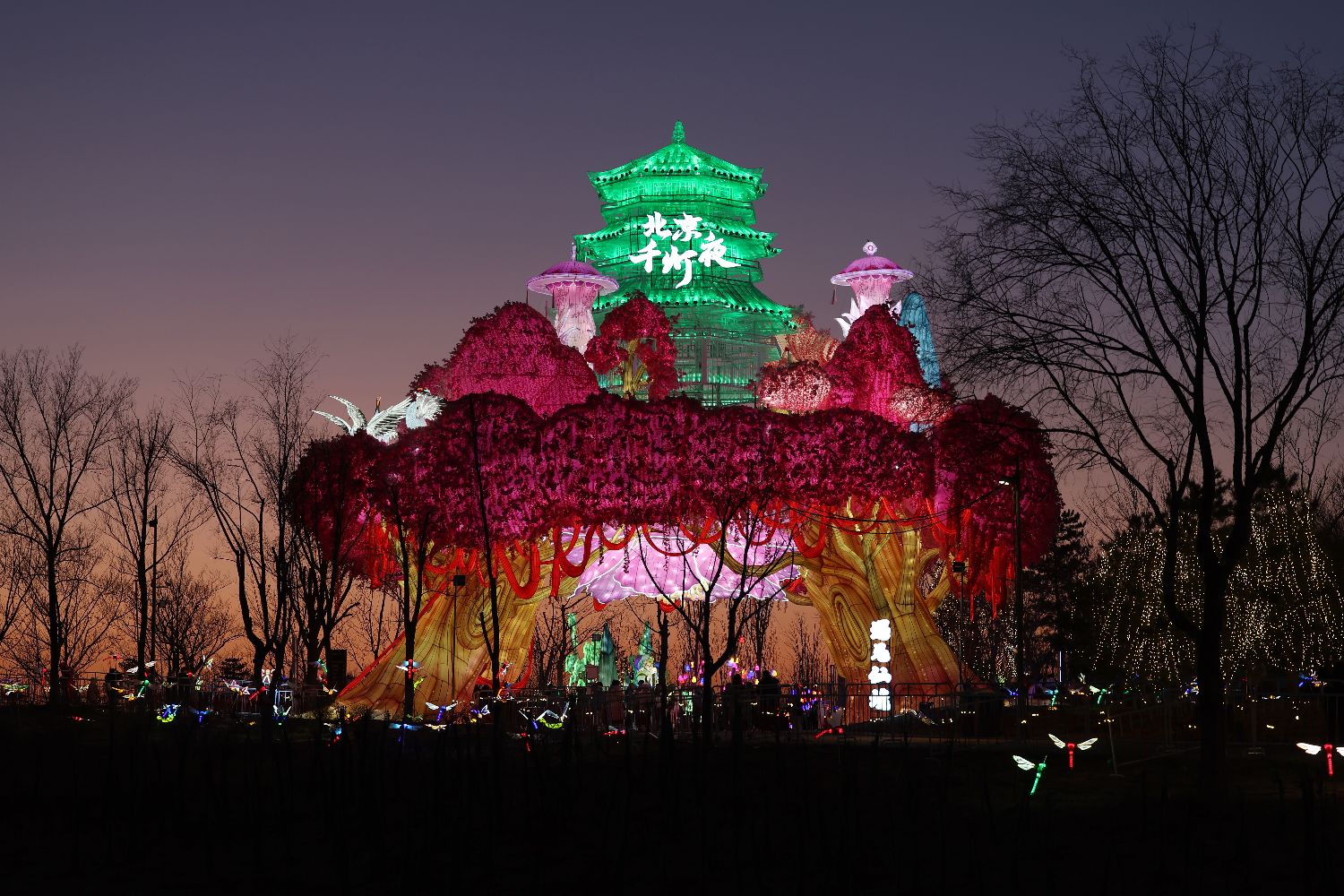 12月28日,“2025北京千灯夜”在北京温榆河公园朝阳示范区西园正式拉开帷幕。本届“北京千灯夜”占地面积扩大至600亩,汇聚超过千组自贡彩灯。据悉,“2025北京千灯夜”12月31日将举办跨年夜特别活动。图为千灯夜活动上的彩灯。中新社