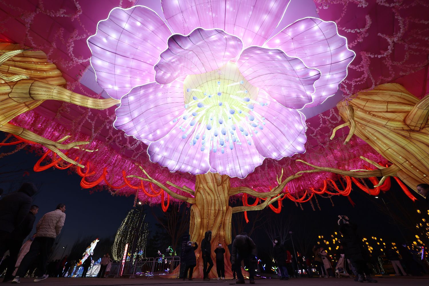12月28日,市民参观“北京千灯夜”活动中的花卉彩灯。中新社