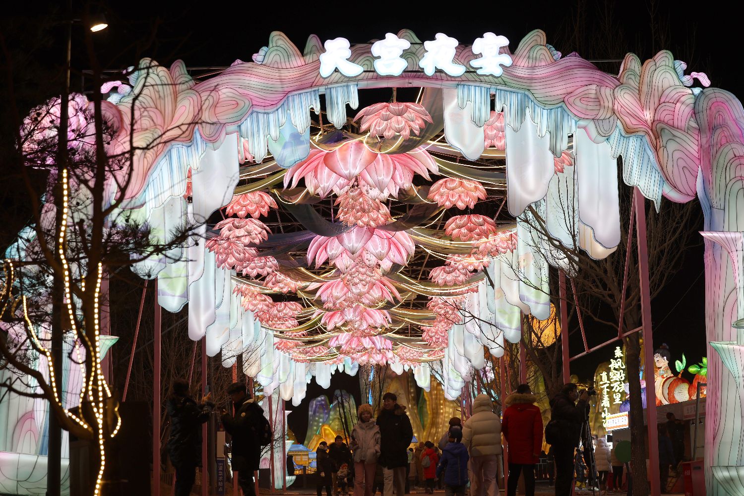 12月28日,民众在天宫夜宴走廊中散步。中新社