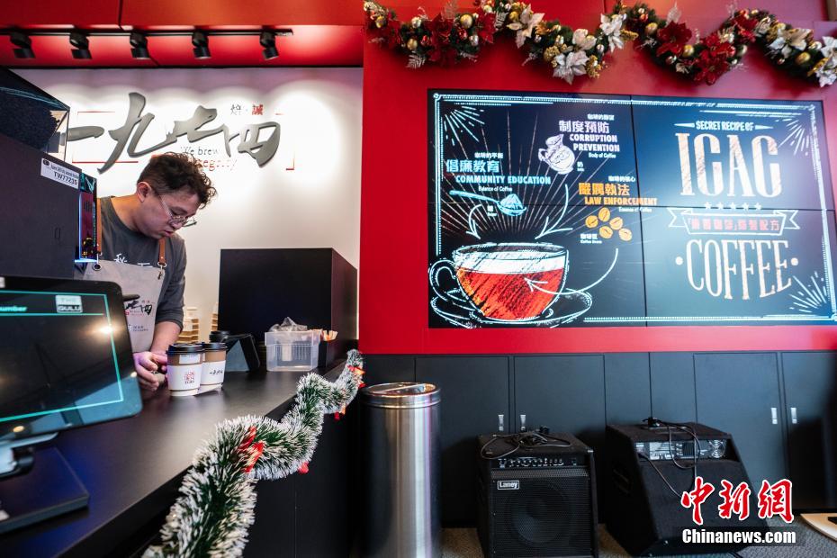 在香港,听到一句“廉署请你喝咖啡”或许会让人心中为之一紧,因为这意味着香港特别行政区廉政公署(ICAC)要请人配合调查;如果调查发现不法行为,则将面临相应法律制裁。前不久,香港廉政公署在位于北角的总部大楼开设一间咖啡厅,请所有人喝咖啡,店名就取自廉政公署创立的年份“一九七四”。别担心,廉政公署这次并不是要调查所有人,而是通过这间咖啡厅,邀请更多普通市民乃至赴港游客走近廉署,在品尝名为“清廉”“保密”“‘诚’果”的咖啡同时,通过参观咖啡厅内展示,有机会了解到廉署的理念和目标。咖啡厅开业后,迄今已售卖咖啡超过10万杯。图为咖啡店工作人员嘉健正在准备咖啡豆。