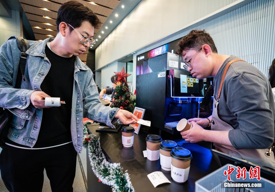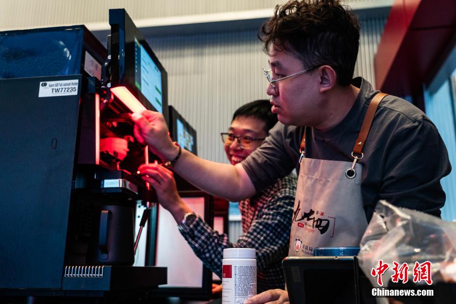 咖啡店工作人员嘉健制作好咖啡后准备叫号。