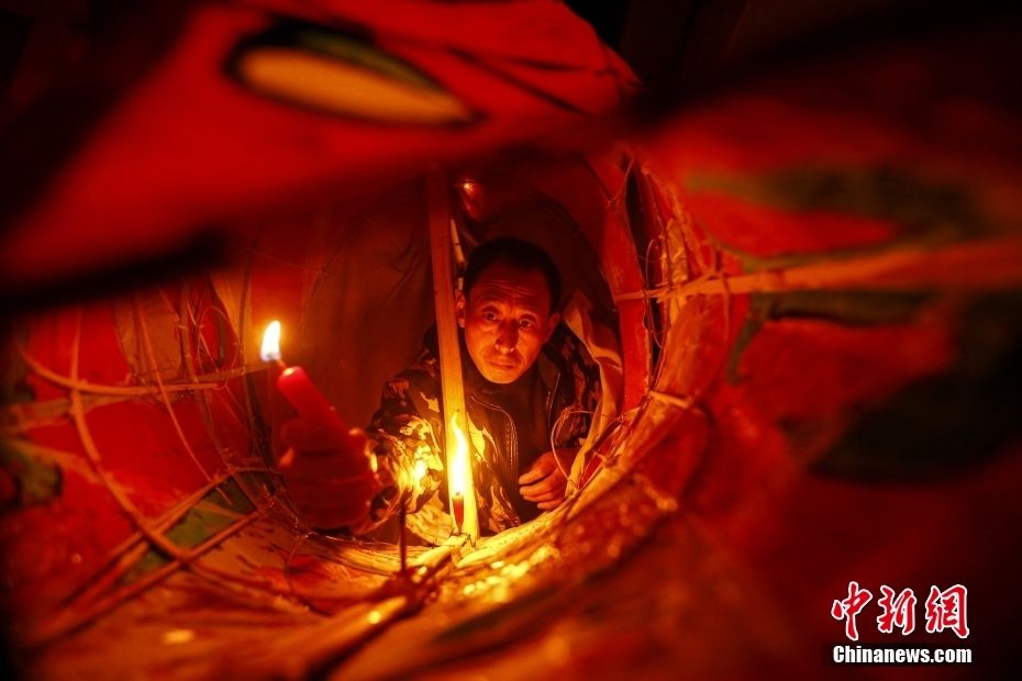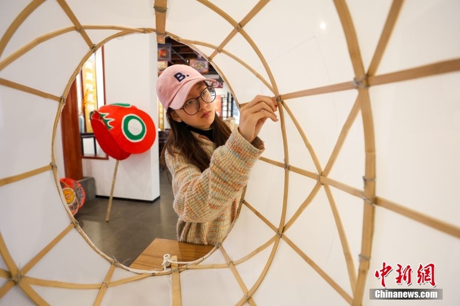 歙县鱼灯以鱼为形、以竹为骨,用棉纸做装裱,再绘上寓意吉祥的鱼鳞纹案,鱼肚内点烛以赋予鱼灯灵性。图为村民在制作鱼灯。