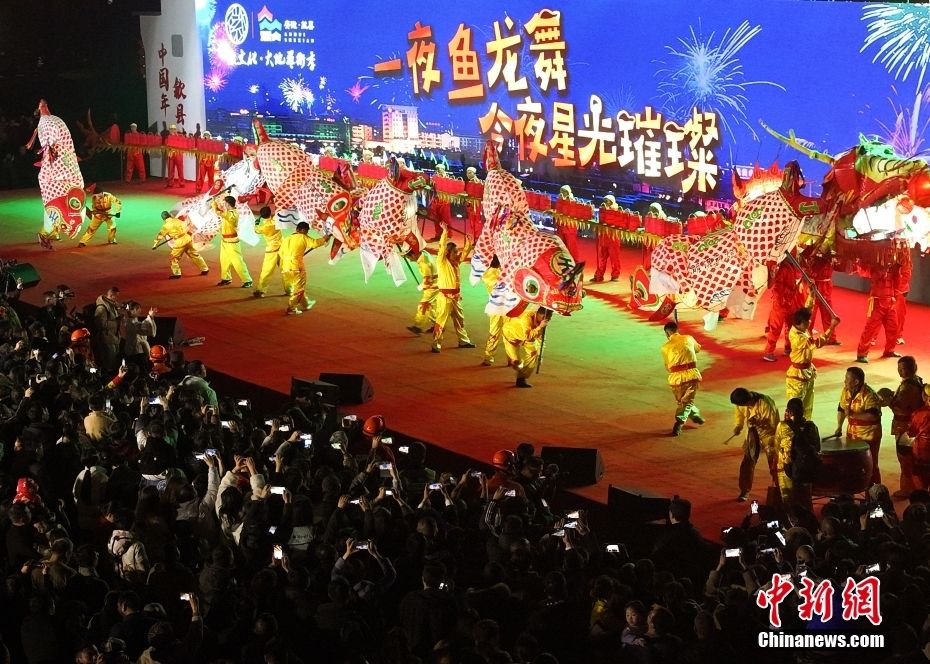 安徽歙县开展“一夜鱼龙舞,今夜星光璀璨”主题民俗展演活动,舞龙、舞鱼灯、打铁花等各类民俗精彩纷呈,热闹壮观。