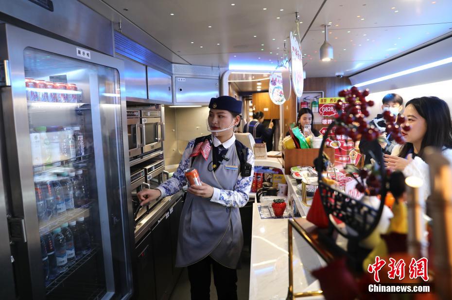 G828次高铁列车上的餐车。中新网