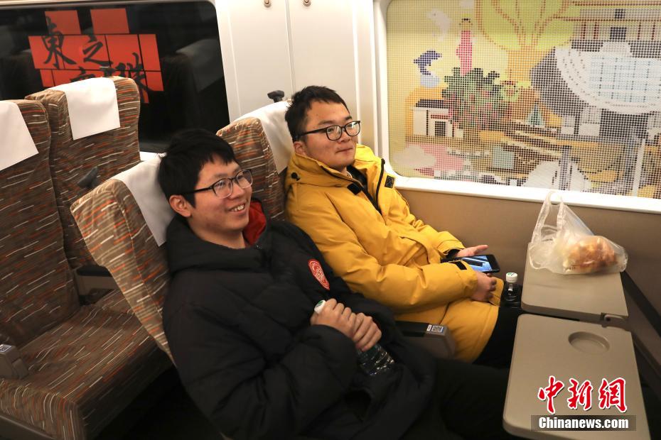 1月5日,搭乘G828次高铁列车的旅客。中新社