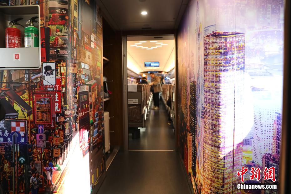 G828次高铁列车被装扮一新,布置了香港元素。中新网