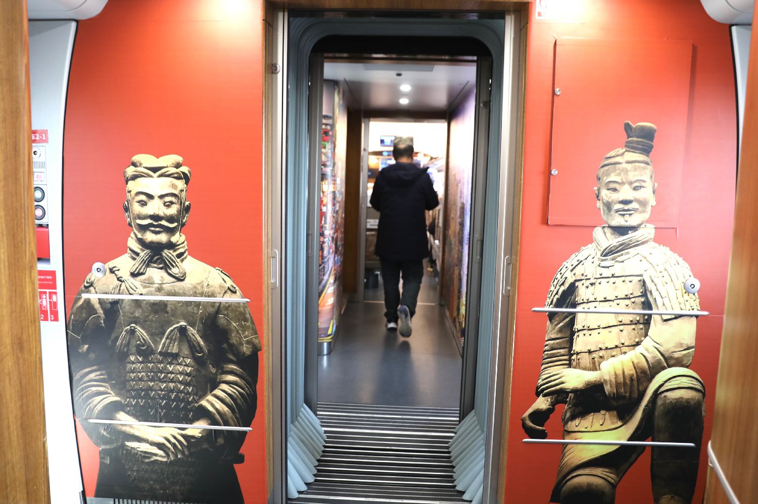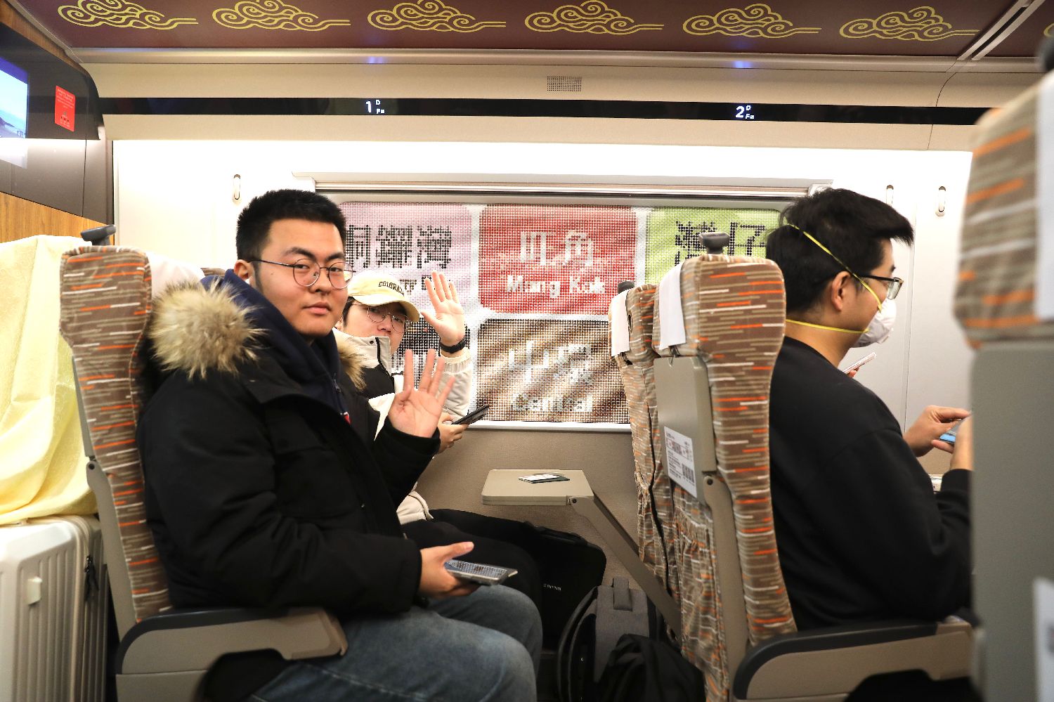 1月5日,G828次高铁列车的“长安印象”主题车厢。中新社