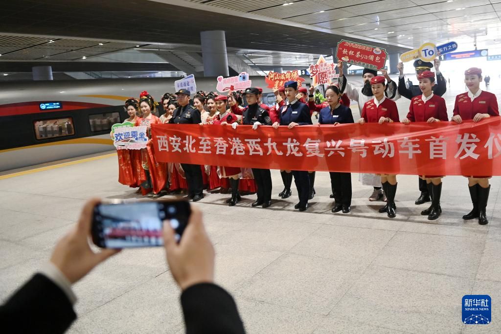 1月5日11时04分,G828次列车从西安北站驶出,标志着西安至香港直达高铁列车正式开行,这是陕西首次开行直达香港高铁列车。西安至香港直达高铁自1月5日起实现每日双向对开,列车采用CR400BF-Z“复兴号”智能动车组重联运行,为旅客出行提供舒适乘车体验和充足运能保障。图为当日,在陕西西安,G828次高铁列车整装待发。中新社