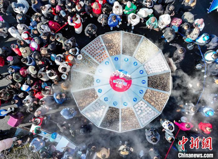 1月7日,在山东省荣成市,大量游客观赏渔家锣鼓、渔家秧歌、渔民号子等表演,并品尝丰盛的海鲜宴。中新网