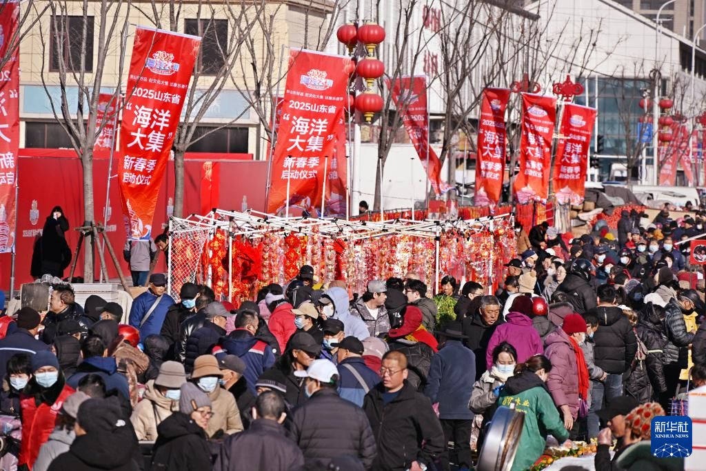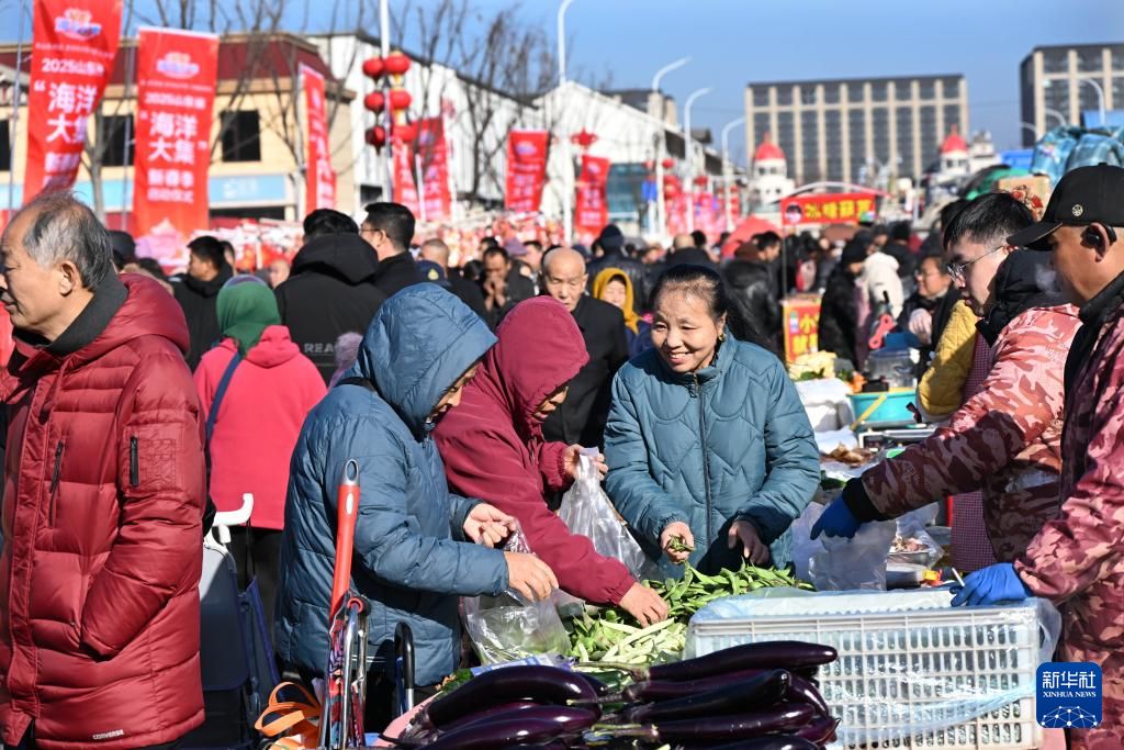 1月7日,在青岛市城阳区,市民在“海洋大集”上选购商品。新华社