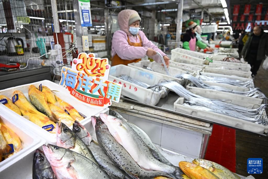 1月7日,在青岛市城阳区,在城阳水产海鲜批发市场,商户为“海洋大集”备货。新华社
