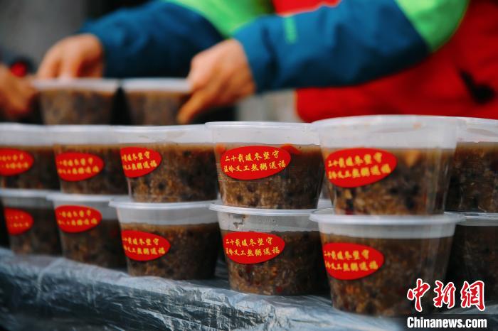 1月7日是农历腊月初八,中国传统“腊八节”,民间有喝腊八粥的习俗。图为位于重庆市沙坪坝区陈家桥街道的一家餐厅精心准备了羊肉粉和腊八粥,邀请辖区内两百名环卫工人“嗦粉”喝腊八粥,庆祝腊八节。中新社