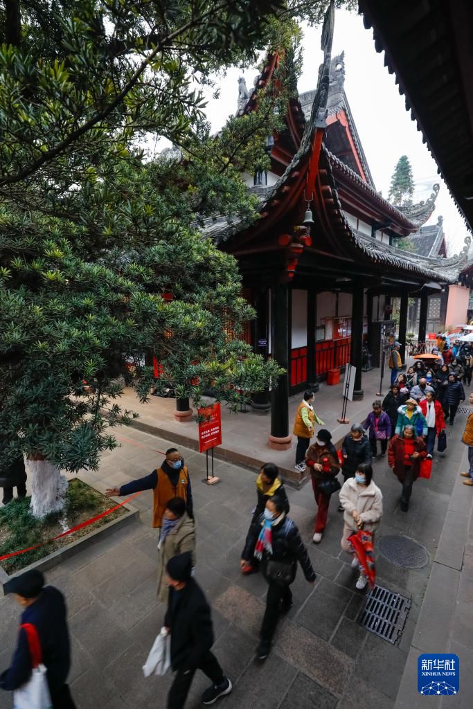 1月7日,人们在四川省成都文殊院排队领取免费的腊八粥。新华社