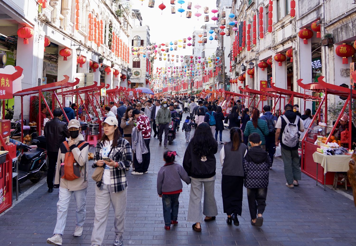 1月12日,海口骑楼老街“年味”十足,游人如织。中新社