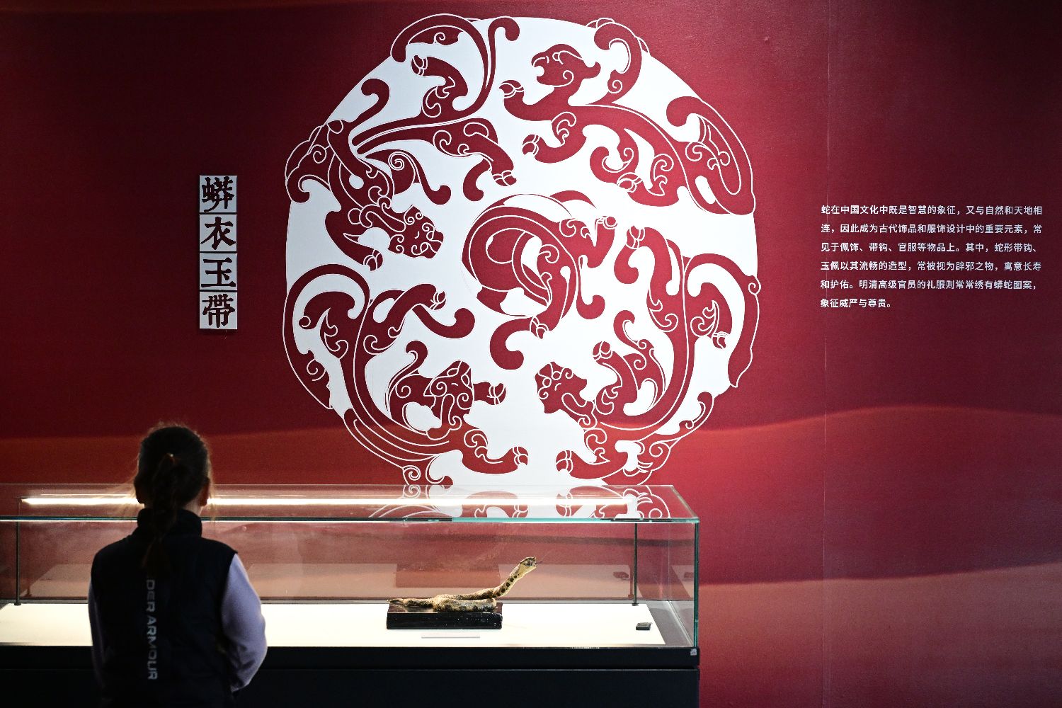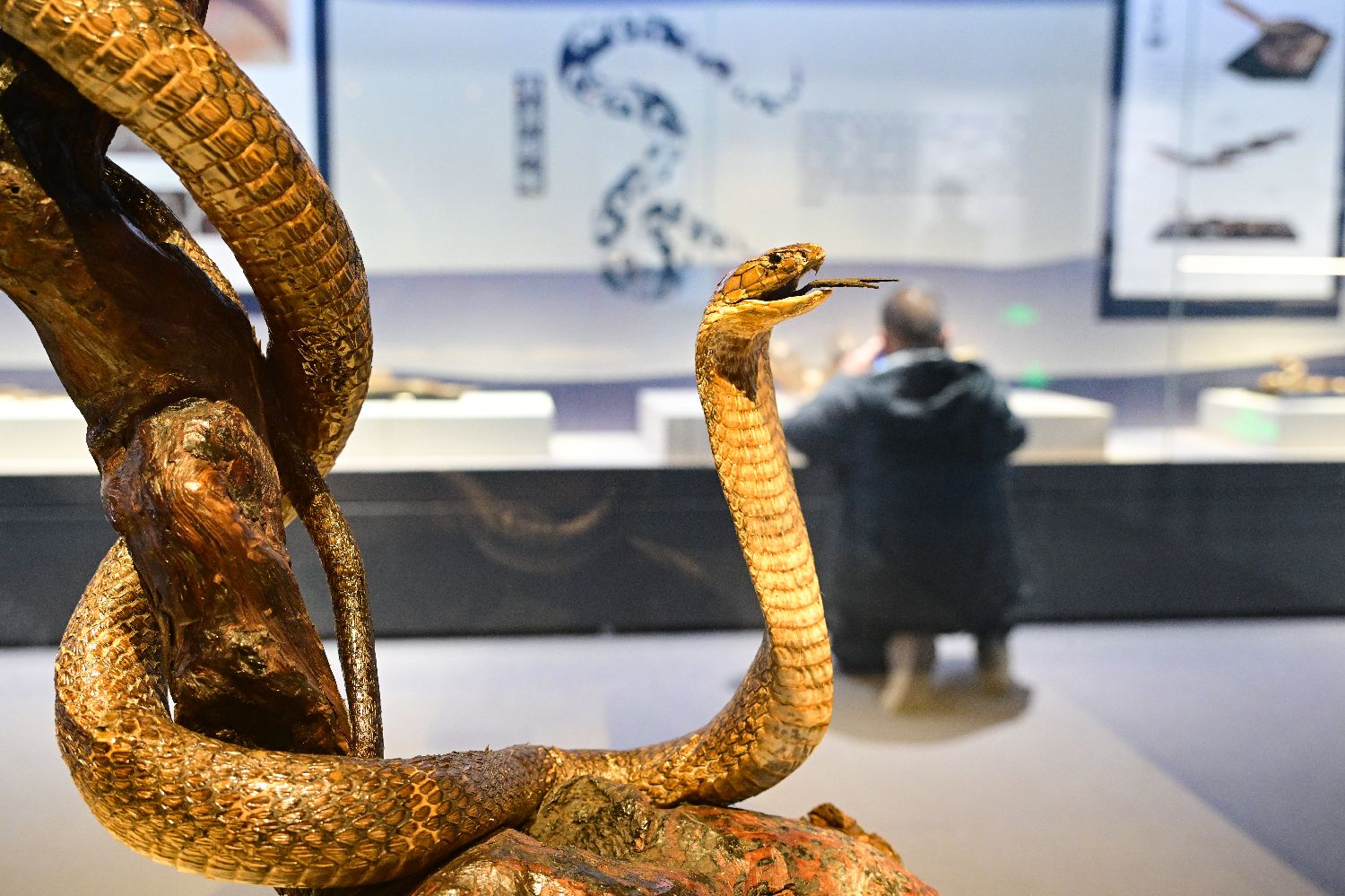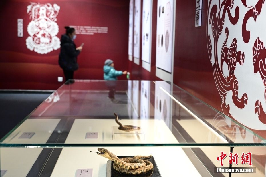 1月14日,“灵蛇献瑞——2025乙巳蛇年生肖文物大联展”在位于北京的国家自然博物馆开展。此次生肖文物大联展,国家自然博物馆精选蛇类标本近50件,全面展示蛇类的独特魅力。图为展览展出的眼镜王蛇标本。中新社