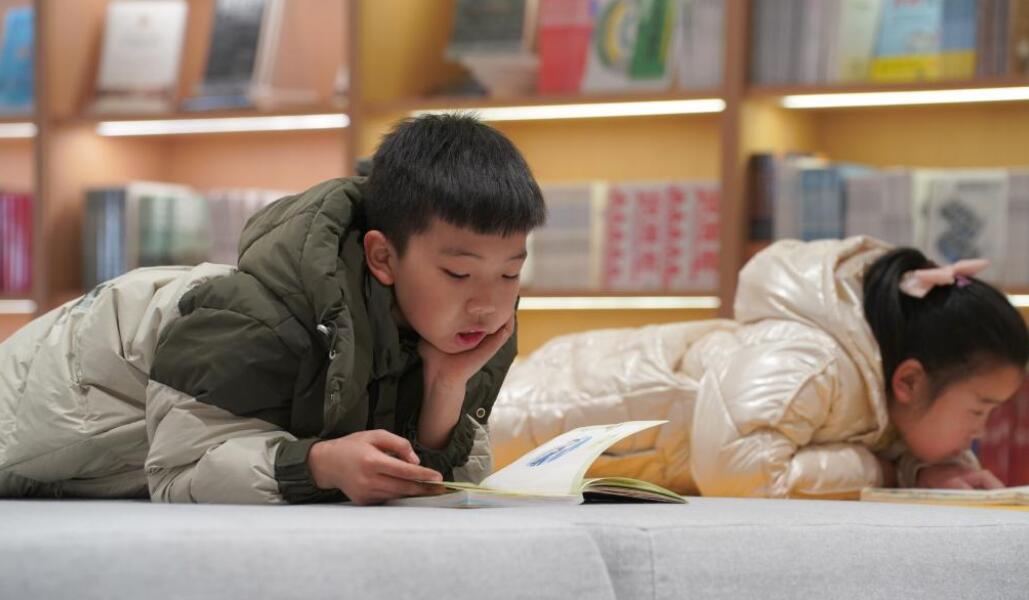 1月13日,小读者在新落成的长安书院内阅读。