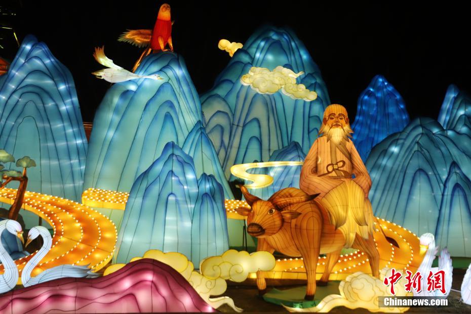 “老子骑青牛”造型的彩灯亮相等会。中新网