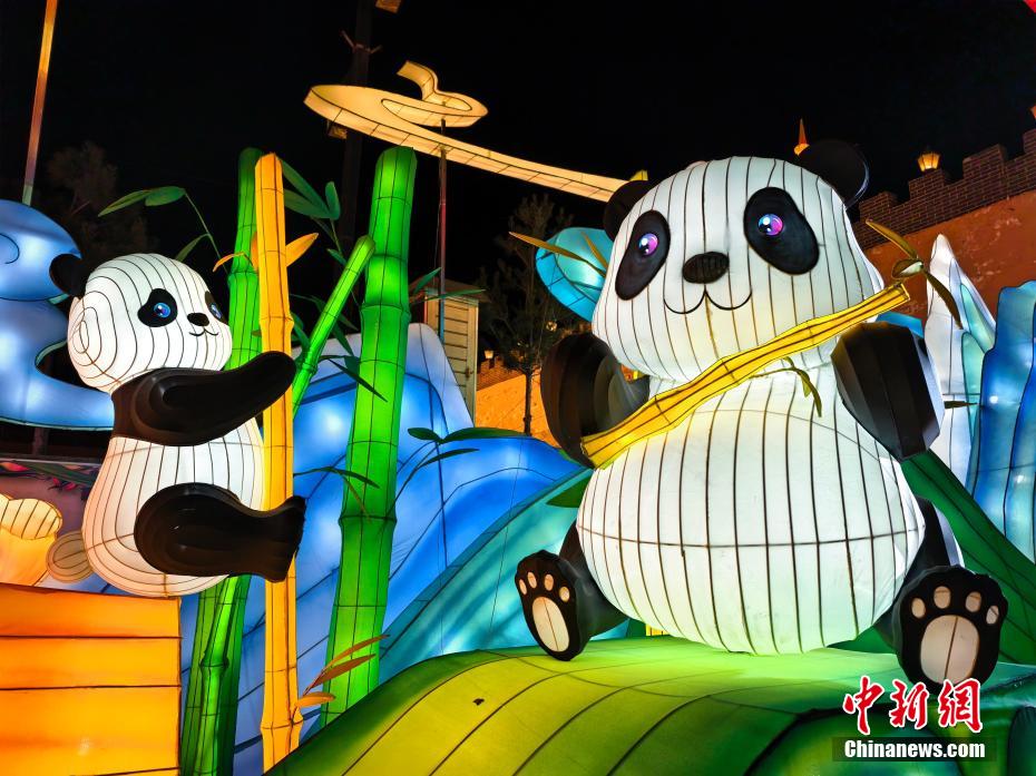 陕州灯会上的“大熊猫”造型彩灯。