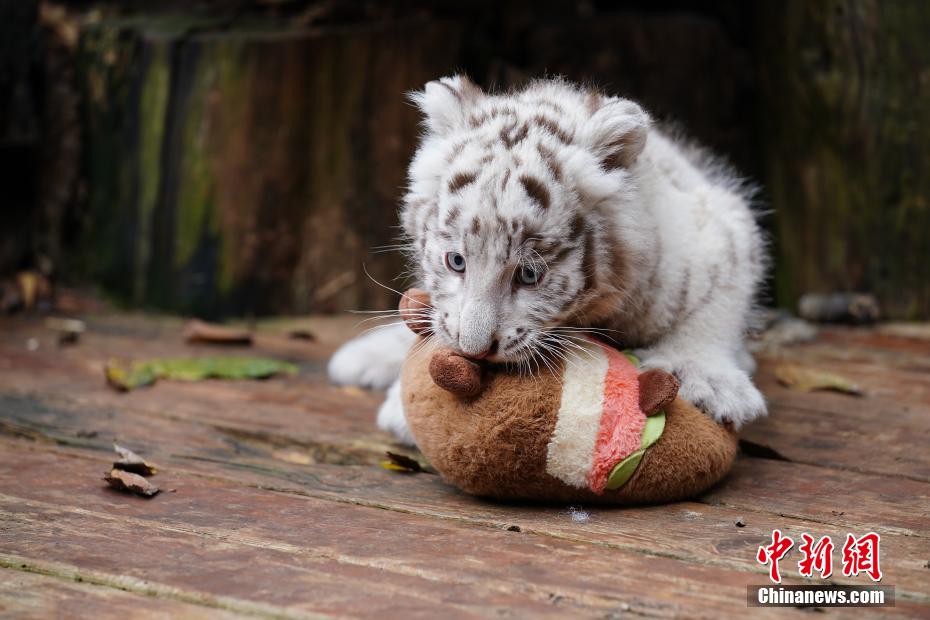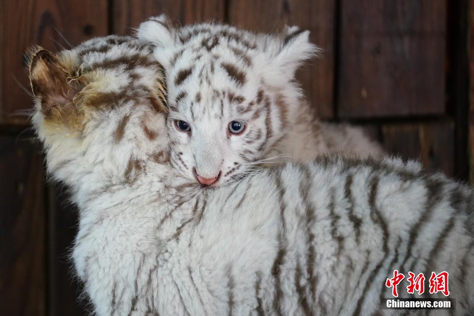 1月20日,两只可爱的小白虎在玩闹。中新网