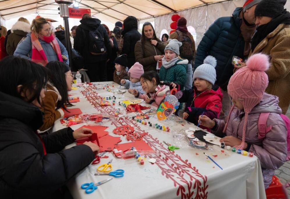 1月18日,人们在匈牙利首都布达佩斯举行的新春庙会活动上体验中国戏曲脸谱绘画。