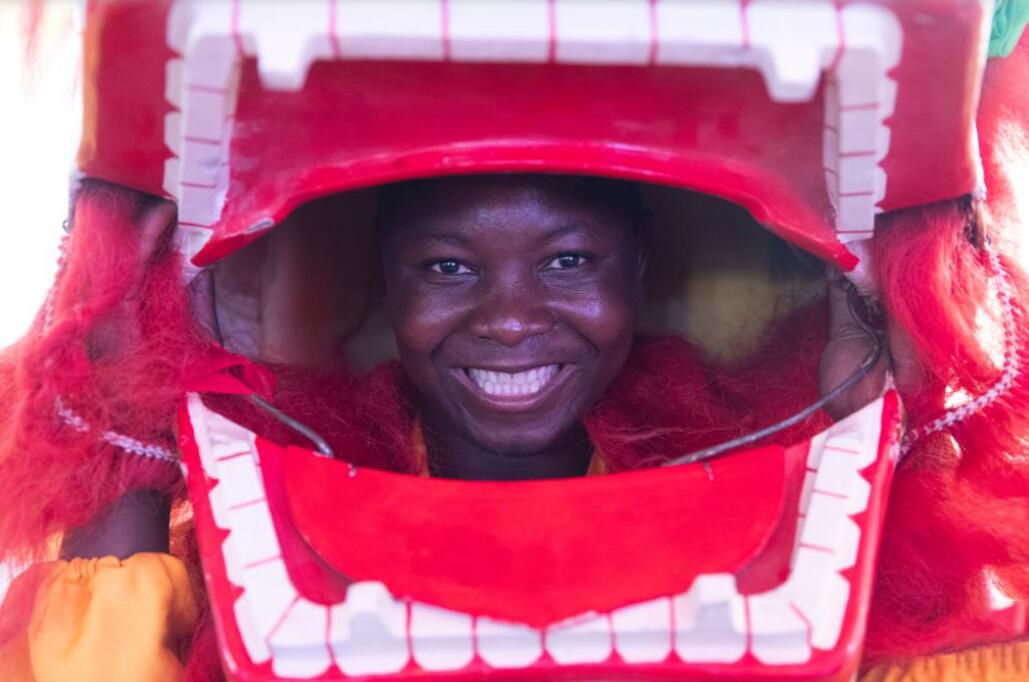 1月19日,由中国驻赞比亚大使馆与赞比亚华侨华人总会联合举办的春节庙会活动在赞比亚首都卢萨卡的利维购物中心举行。来自中赞两国各界代表、华侨华人以及当地民众数千人欢聚一堂,共同庆祝中国农历春节,感受中国文化独特魅力。图为1月19日,在赞比亚首都卢萨卡举行的春节庙会活动上,一名赞比亚武术协会成员准备表演舞狮。