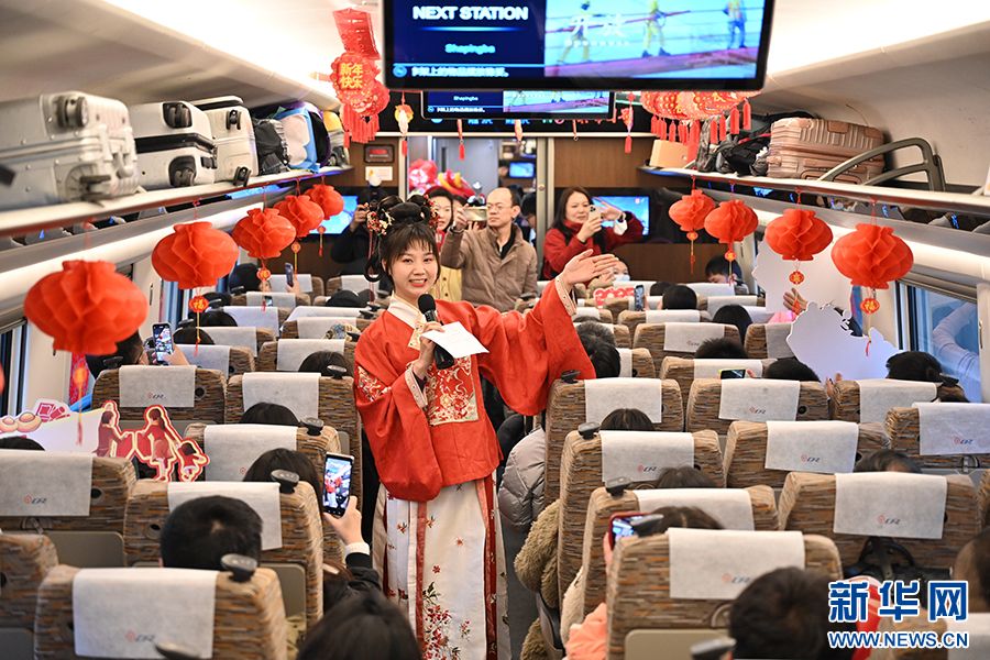 1月22日,G8611次复兴号动车组车厢内的表演。新华网