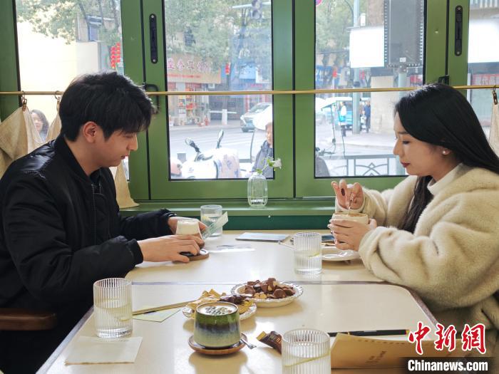 1月22日,消费者在咖啡馆拍照打卡。