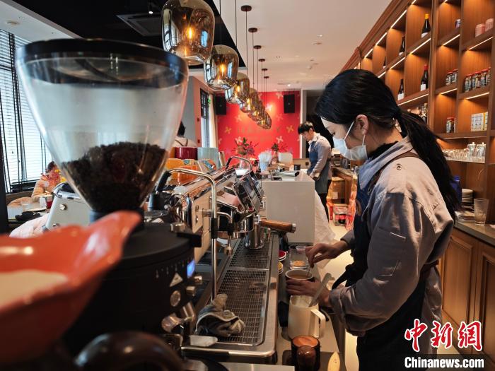 1月22日,咖啡师制作咖啡。