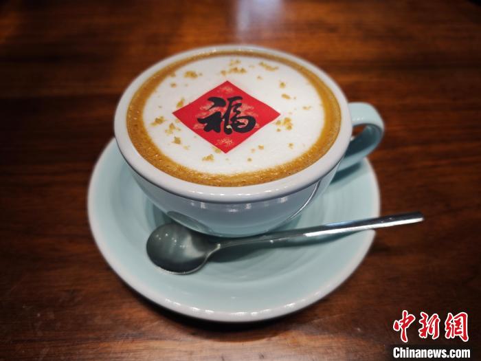 1月22日,一杯带有“福”字的咖啡。