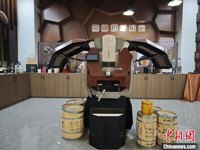 1月22日,青田咖啡之窗里展示的咖啡豆烘焙机模型。