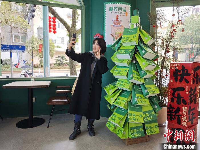 1月22日,中国邮政与青田一家咖啡馆推出的打卡点。