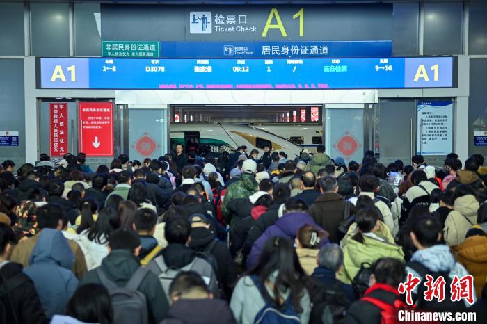 1月26日,成都东站旅客正排队检票进站。中新网