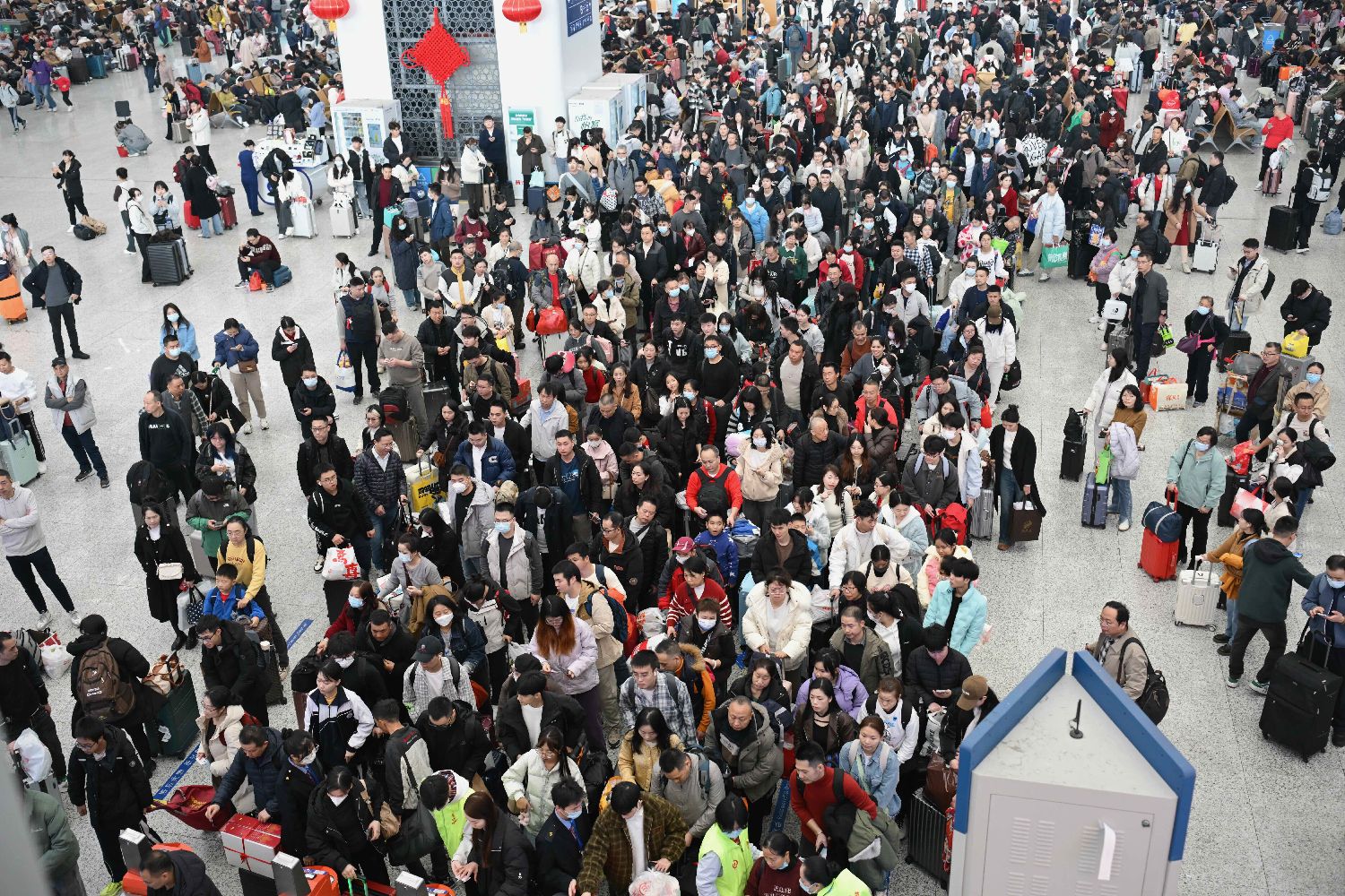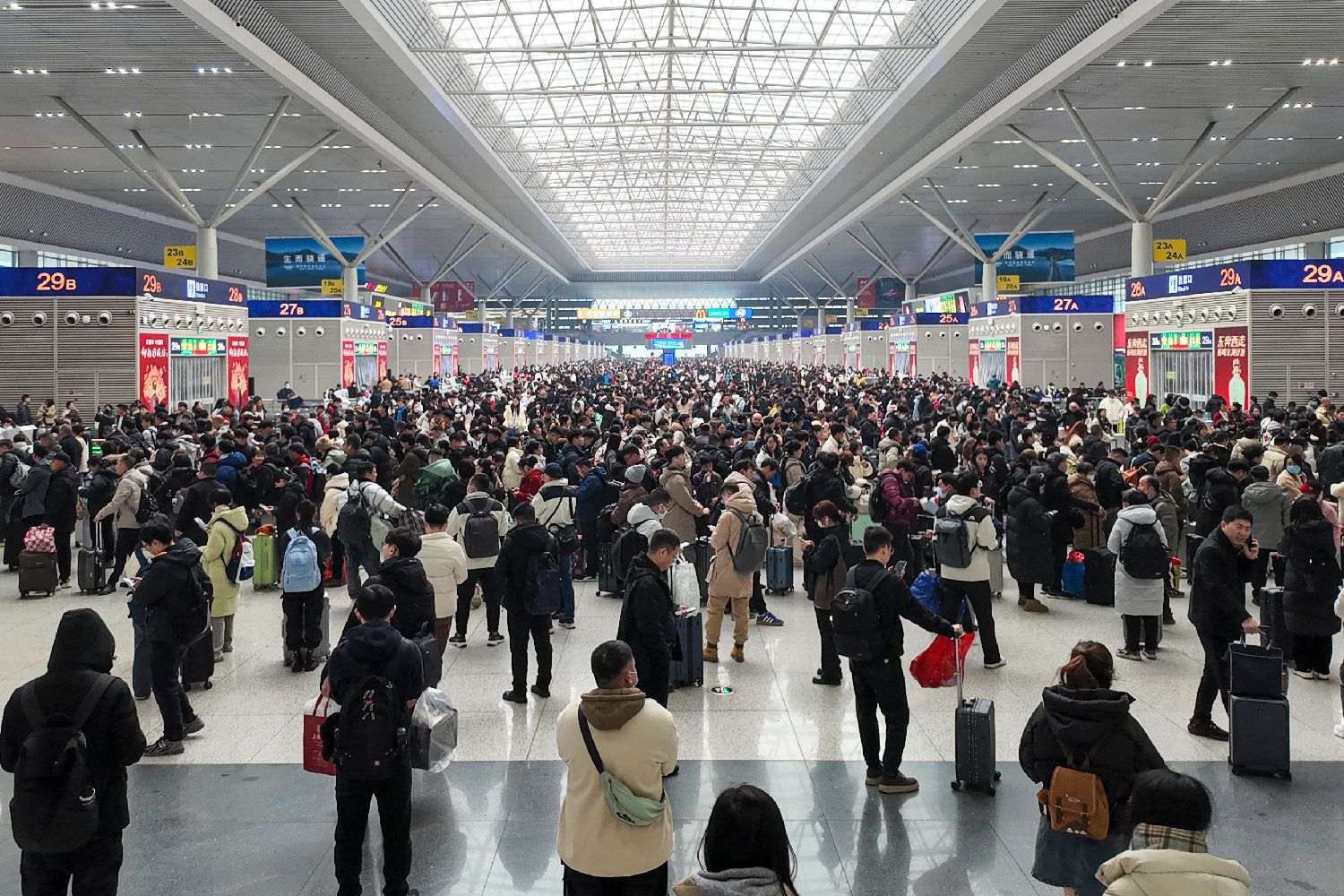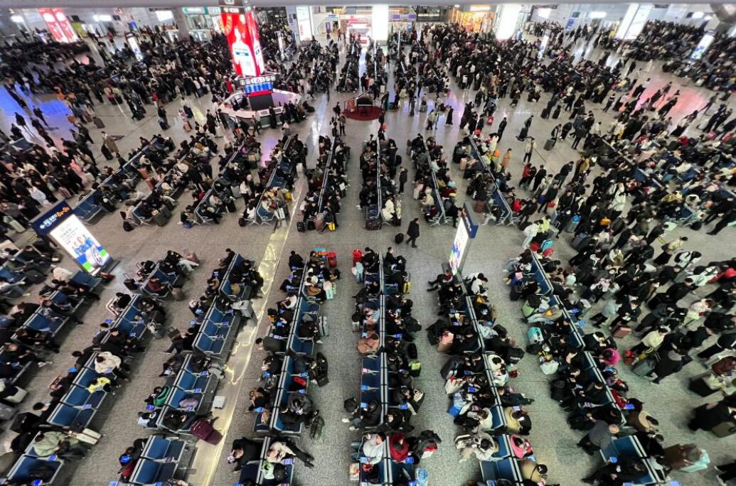 1月22日,河南郑州东站候车大厅内人头攒动。中新社