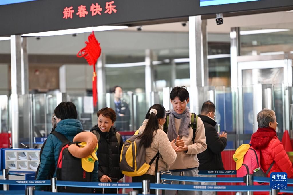 1月28日,越南游客在北京首都国际机场三号航站楼入境现场候检。