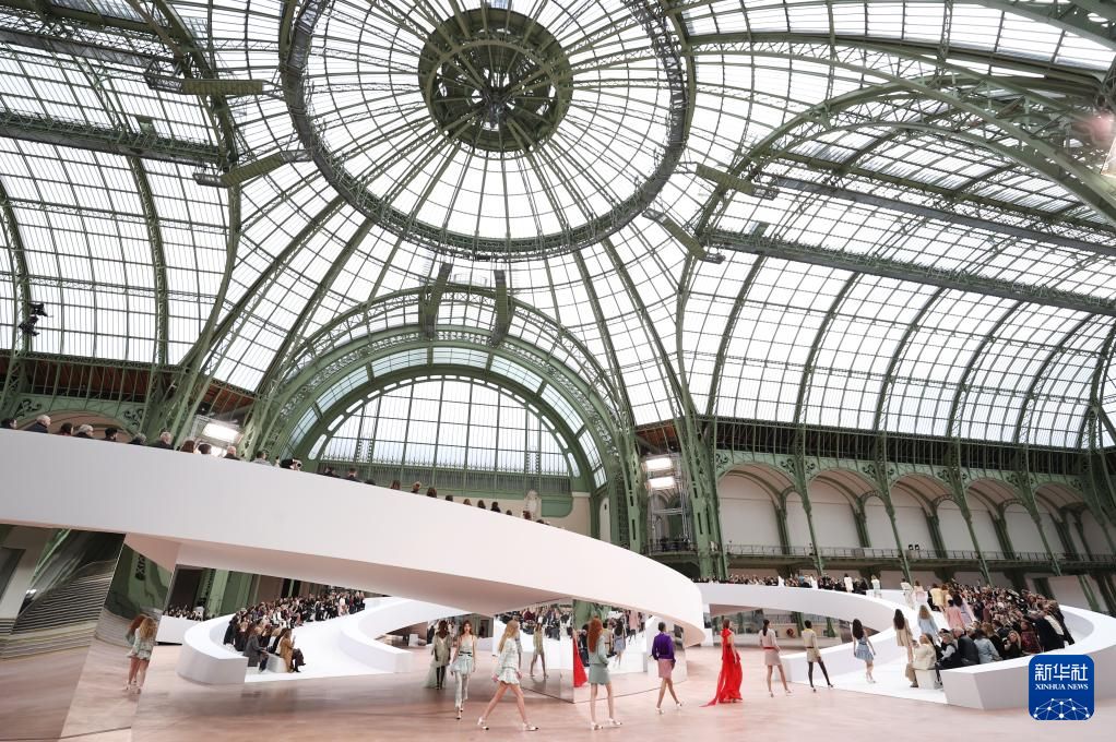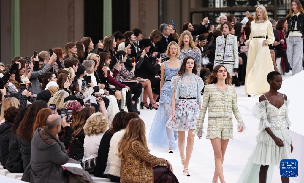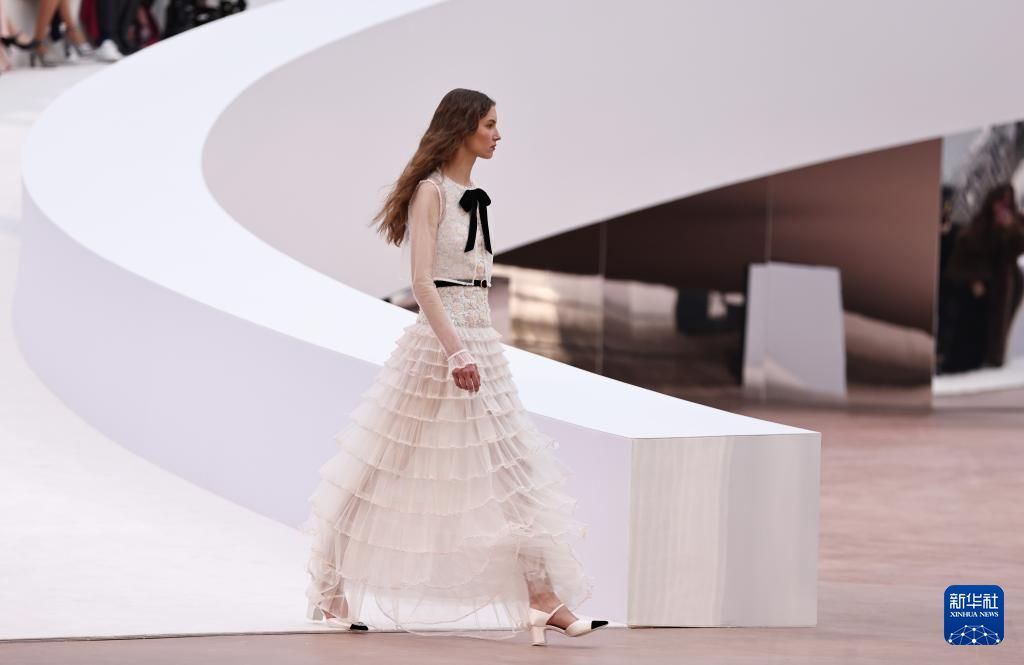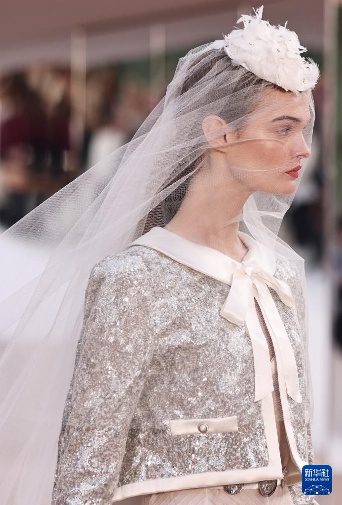 法国2025巴黎春夏高级定制周于1月27日至30日举行。图为1月28日,模特在巴黎高级定制周上展示法国品牌香奈儿2025春夏新品。