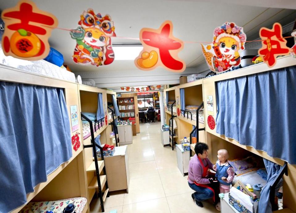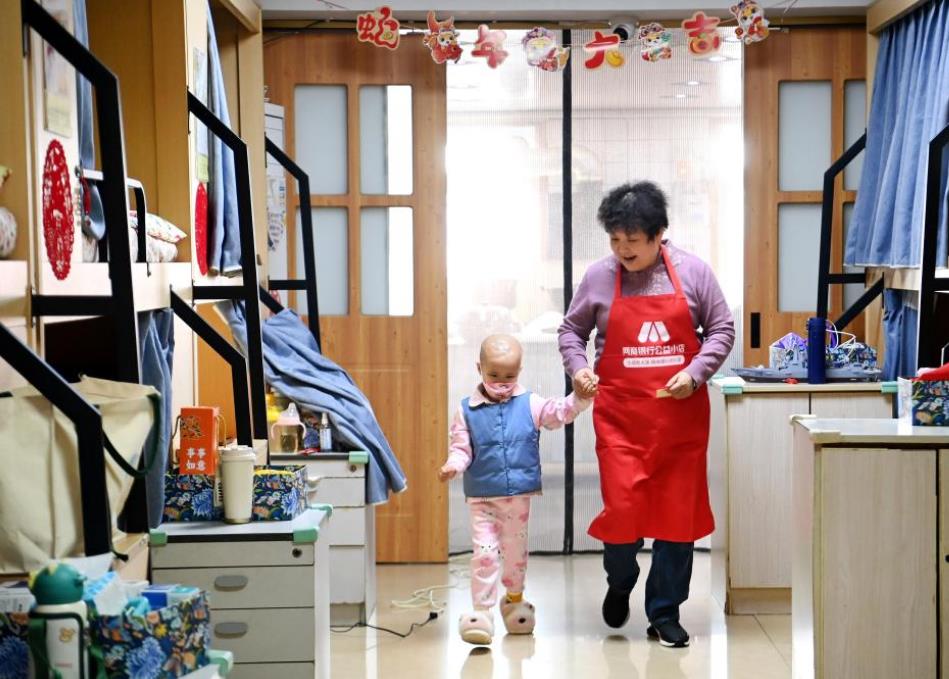 2017年至今,“心羽家园”已帮助过2500多个困难患儿家庭。今年是常向阳在“心羽家园”度过的第八个春节,每年除夕,她都与这些病患家庭在一起,共同准备一顿丰盛的年夜饭,迎接新年的到来。常向阳说,孩子们的健康成长是她最大的愿望,只要还有需要帮助的困难家庭,“心羽家园”的大门就会一直敞开。图为1月28日,常向阳在“心羽家园”照顾孩子。