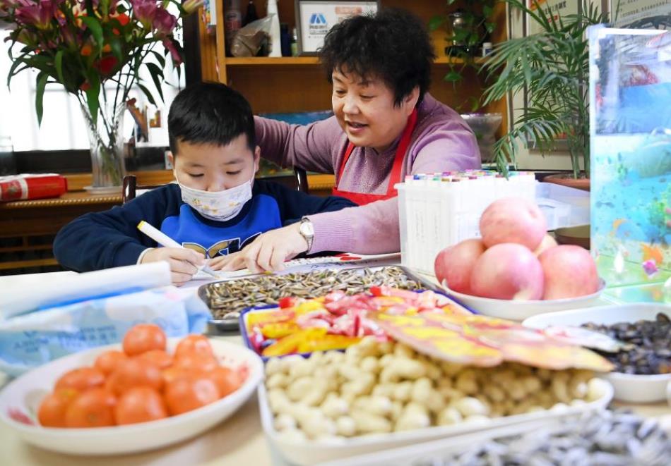 1月28日,常向阳在“心羽家园”陪伴孩子学习。