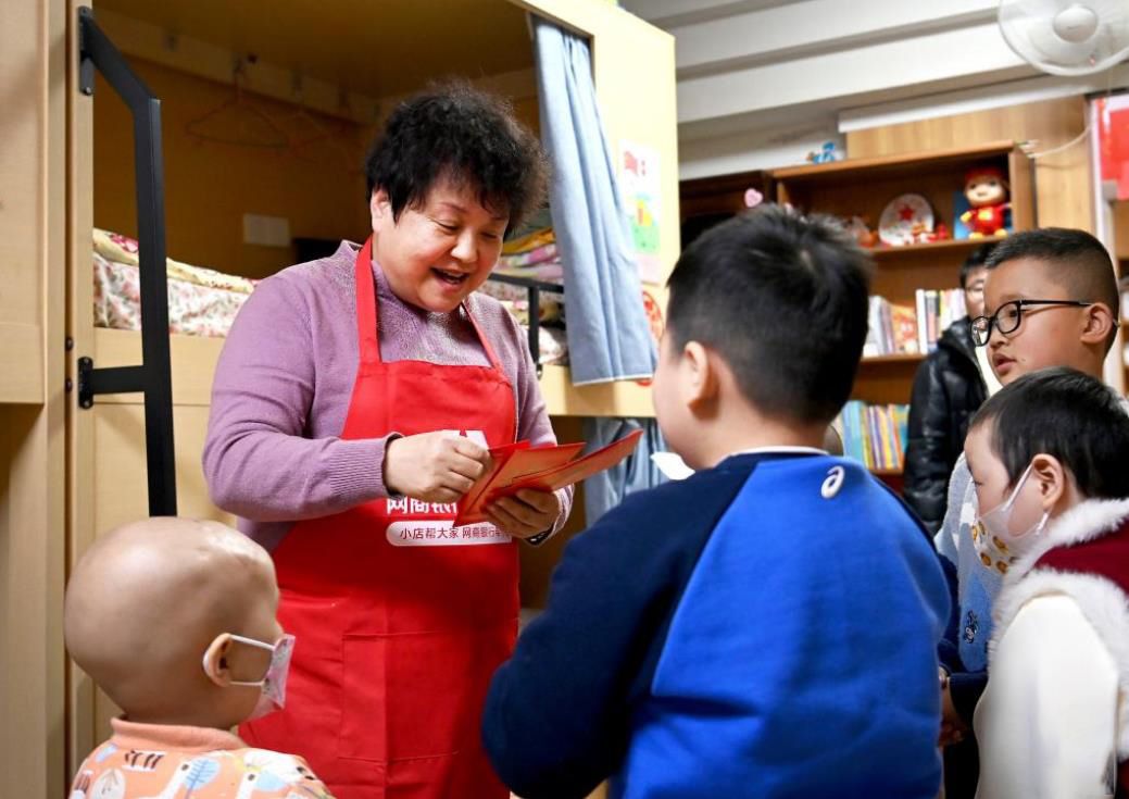 这些年,一批又一批外地贫困患儿和家长入住“心羽家园”。这个“家园”成为很多外地病患家庭温暖的“港湾”。在这里,孩子之间像兄弟姐妹,家长们也在彼此温暖、相互鼓励之下,有了更多面对困境的勇气。图为1月28日,常向阳给孩子们发新年红包。